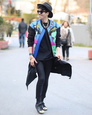 条纹衫洋溢着浓浓的海军风,是夏季搭配中的标配。黑白色的细条纹,简单清新的风格,搭配姜黄色的短袖外套,藏蓝色的短裤,皮质的黄色板鞋和外套呼应,棕色的皮带,海军风的蓝白色手表,再搭配上镶边墨镜,再精彩不过的一套男装搭配。