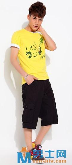 男生的休闲装莫过于一款圆领印花短袖T恤搭配一条五分裤了,不仅可以出街穿,还能作为运动装哦,清新爽朗的造型会让男生看起来更加精神充沛。