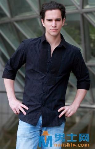 衬衫作为一个男人形象的展示柜,将男人的品味和个性反映了出来,经典的黑色、上胸部的独特设计、白色的细线条,演绎出男士狂放不羁而又不失风度的新排时尚。非常适合适合成熟稳重、谦逊的商务工作者哦。