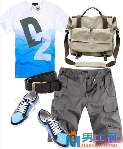 海天一色的让人惊羡的颜色,蓝与白的过渡简直是近乎完美,非常的干净清爽,搭配休闲个性的中裤,独特的帆布大包,同样还有蓝色系的休闲单鞋,清爽与利落并行,休闲与优雅并肩。此款搭配,适合非正式商务场合,适合和朋友约会,休闲旅游哦。