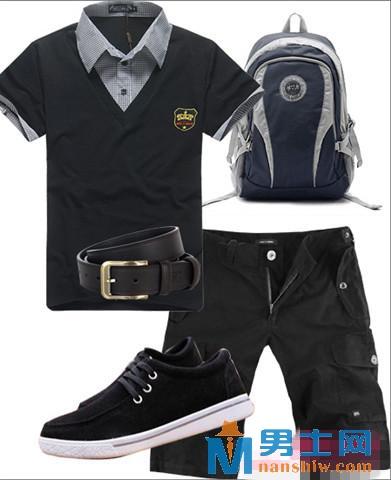 细格衬衫领假二件式V领T,很文气含蓄,搭配休闲中裤,不张扬,非常适合肤色较好,学生味十足的男生穿着。