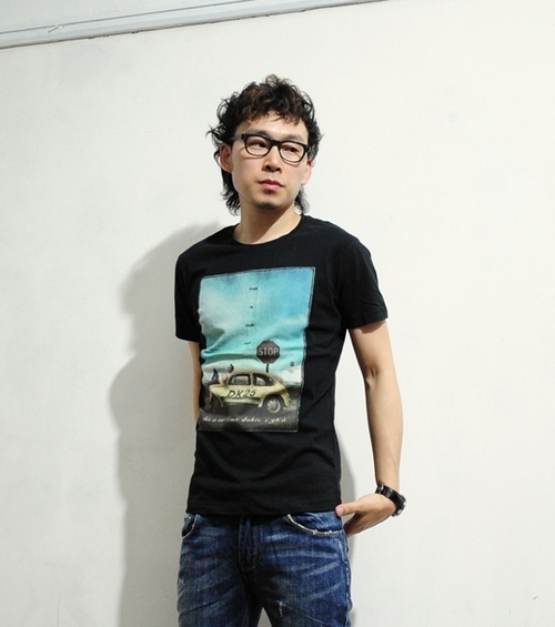 时尚潮流小清新天空英伦汽车图案短袖T恤,舒舒服服扮时尚!