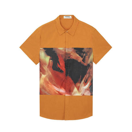欧式方领,剪裁科学,只为保证穿着者的舒适感;前片印花图案,色彩鲜艳,扭曲交错的色块,颇有抽象画般狂放的艺术气息;黄色基调,充满热情与活力,是夏日阳光沙滩的标配。