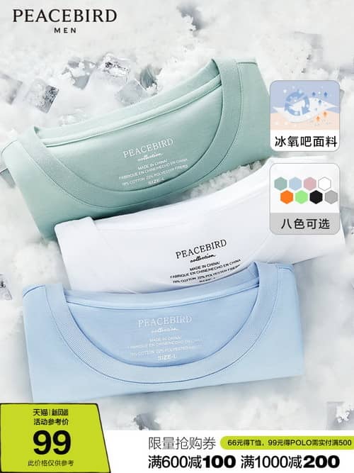 【再省50元,月销1w+,累计评价45107,收藏人气117703】【太平鸟男装旗舰店!正品!】纯棉短袖T恤,纯色百搭简约,学生、商务都可以搭,经典款式,三种领口,你衣柜永远需要备几件,你还在等什么!