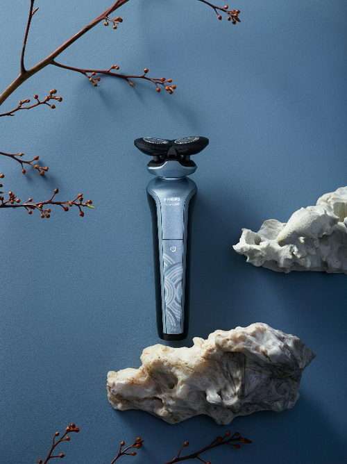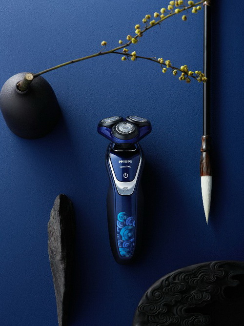 古代匠人用巧夺天工的雕刻技艺,塑造出宫殿台基上生动浩瀚的丹陛石,其上常雕有穿越祥云的龙凤等纹样以示尊贵。故宫三大殿中保和殿北,有紫禁城里最著名的一座丹陛,它体量巨大,雕饰华丽,九条栩栩如生的龙,沿着流动的祥云纹饰层层飞腾,恢弘的气魄令人叹为观止。飞利浦取意于故宫丹陛石上的传统纹饰——祥云纹,结合深邃沉稳的故宫经典霁蓝色,将九霄凌云纹呈现在电动剃须刀的机身之上,展现故宫传统古典美的同时,传承祥云纹的神韵,在电须刀上重现这份祥云灵动的美感,也赋予产品祥瑞高升的寓意。