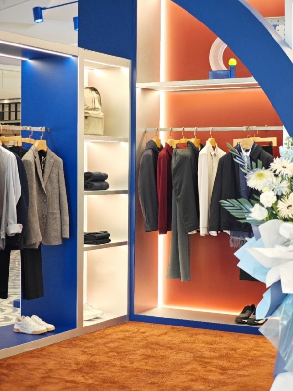 巡展店以克莱因蓝为主色调,搭配活力橙红展柜与网球黄元素,形成鲜明视觉层次。入口处弧形发光品牌标识与内部陈列区的球拍、堆叠网球及奖杯装置强化主题。男装区主打航天棉服、轻暖羽绒等时尚休闲套装,女装区则以网球系列演绎优雅运动风,搭配展架凸显面料质感。现场通过“旅行+运动”穿搭场景、暖橙色地毯及互动装置,传递多场景切换的品牌核心,让繁忙的都市人在工作、闲暇之余,轻松解锁网球生活的多元魅力。
